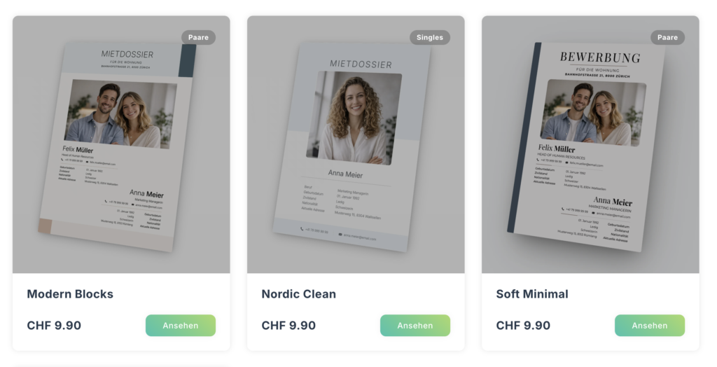 In wenigen Minuten zum professionellen Mietdossier. In Microsoft Word oder Canva.