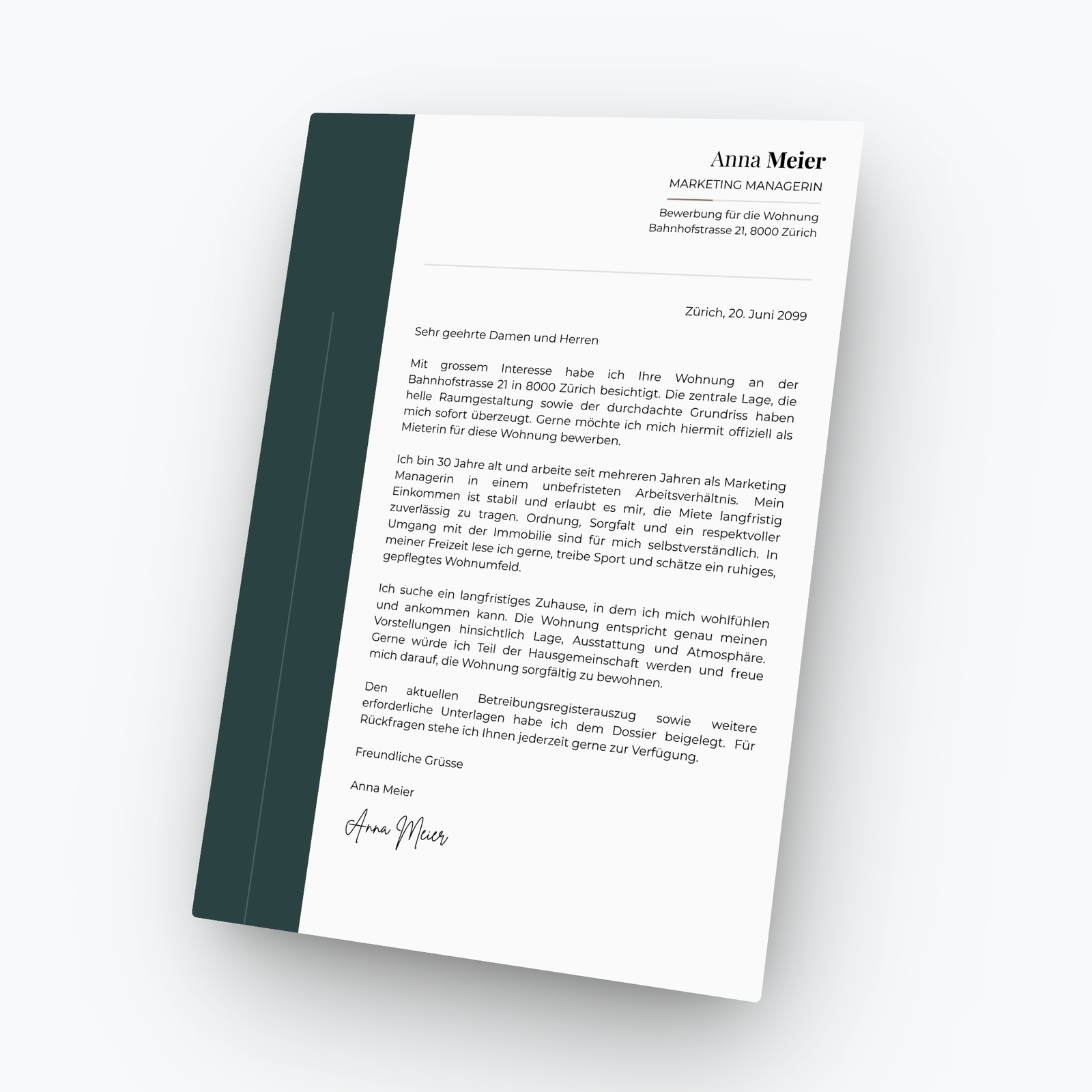 Wir erstellen für dich die fixfertige Wohnungsbewerbung, welche du direkt versenden kannst.